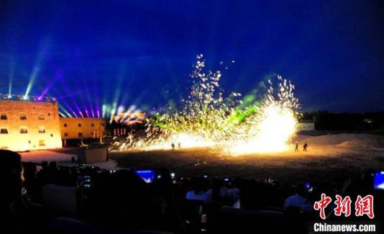 圖為沙漠實景劇《敦煌盛典》的演出現場,觀眾在“穿越”古今的賞劇體驗中感觸絲路文化。 康錦虎 攝