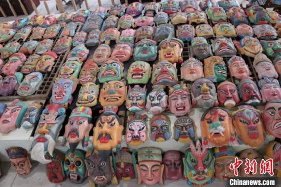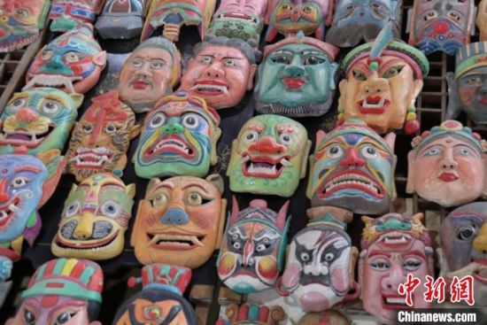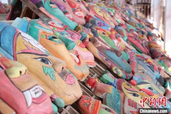 “玉面狐貍”“長(zhǎng)須鬼神”“獠牙青面”……中新網(wǎng)記者走訪該館時(shí)看到,五顏六色、形狀各異的數(shù)千面具極具“復(fù)古感”,神怪妖精或彪悍猙獰,或和藹慈祥,輪廓清晰,形象鮮明。置身其中,彷佛回到古人穿戴面具,跳動(dòng)儺舞,舉行祛災(zāi)納祥儀式的場(chǎng)景中。