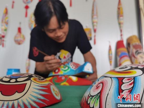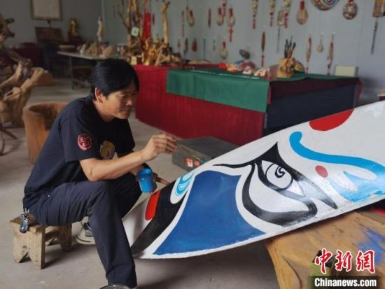 取材、挖空、刨光、勾線、著色……經過這些步驟,一個馬勺臉譜就完成了。馬勺臉譜由中國民間社火臉譜演化而來,已有數千年歷史,系列產品主要包括馬勺臉譜、梭子臉譜、鏟子臉譜、木锨臉譜等。9月初,甘肅省隴南市徽縣馬勺臉譜的省級傳承人馬龍,依舊在工作室創作。今年47歲的他,堅守馬勺臉譜的制作技藝已有20余載,不僅傳承了社火臉譜和京劇臉譜的古韻,而且創新了貼金、刻繪等技藝,在傳統中融入了現代造型和色彩元素。它的作品在網絡引起熱議:“臉譜畫在梭子上,厲害了。”“寶藏非遺,期待下次打卡。”
