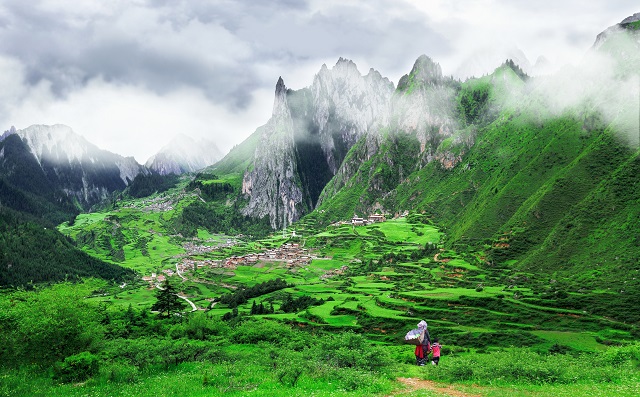 入夏后,甘肅省迭部縣益哇鎮扎尕那景區愈發美麗迷人,站在山腰處的觀景臺向下望去,依山而建的代巴、業日、達日、東哇4個自然村在云霧間若隱若現,鱗次櫛比的藏式民居和山坡上的油菜麥地、四周的翠綠山巒,共同勾勒出一幅充滿藏家風情的山水畫卷。