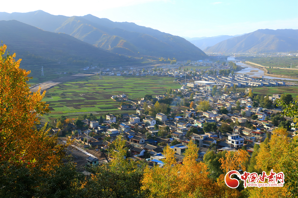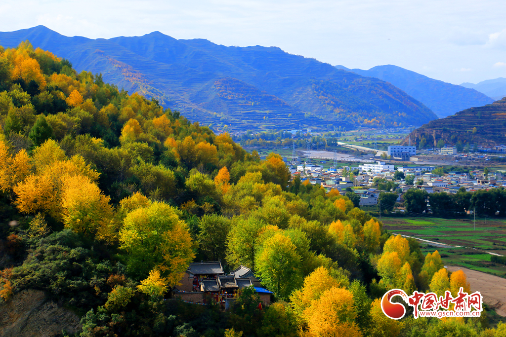 金秋時節,岷縣十里鎮秋色漸濃,山林樹木色彩斑斕,岷山洮水與民居田園相映成趣,勾勒出一幅美麗的秋日畫卷。