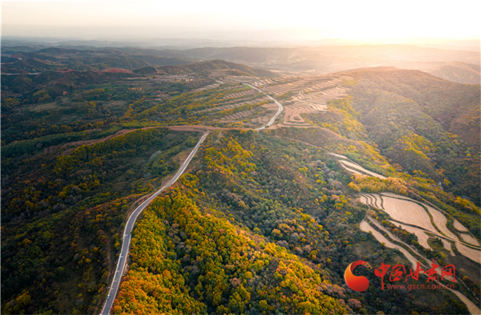 金秋十月,秋意漸濃。走進崇信縣新窯鎮西劉村擋箭山,彩葉滿山,層林盡染,深綠、金黃、橙紅、灰白等色彩交織在一起,五彩繽紛,構成了一幅獨特的秋日美景,飽覽秋色山光,好似一幅天然的油彩畫卷,美不勝收,彎彎曲曲的盤山公路更給幽靜的山巒增添了幾分活潑與靈性。