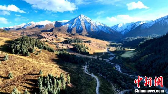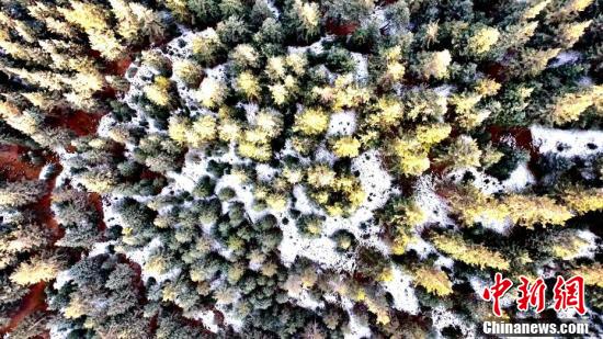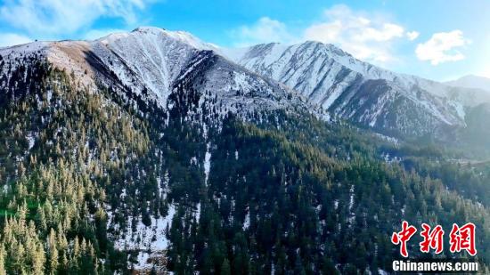今年截至11月4日,中國東北地區大部、新疆、青海、西藏、內蒙古、甘肅等地都已經進入氣象意義上的冬季。圖為薄雪覆蓋山巒和林區。