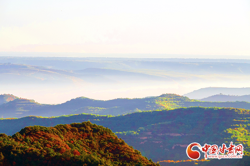 初冬時節,在夕陽的映照下,平涼市唐帽山省級森林公園云霧繚繞,山巒在云霧中若隱若現、如夢如幻,呈現出仙境般美景。
