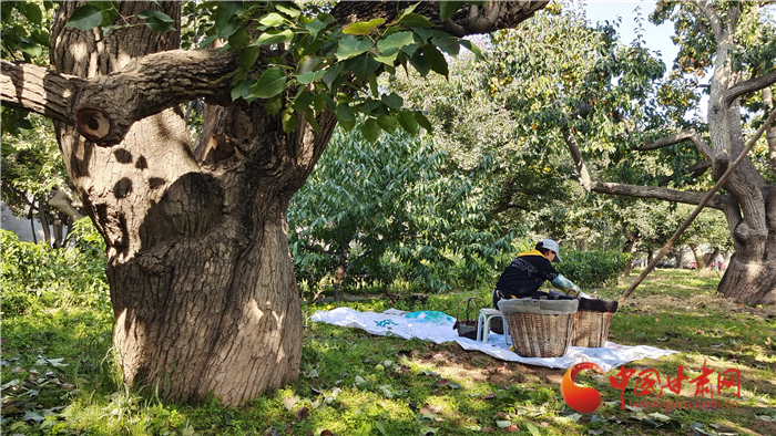 百年梨樹樹冠高大,小梯子望塵莫及,打理這些果樹又被當地群眾成為照顧“空中莊稼”。