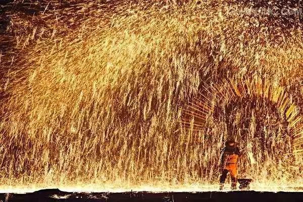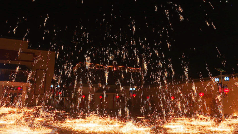 傳統“打鐵花”以老風匣、小融鐵爐、耐火罐、陶勺、耐火鍋、木板等為工具;以生鐵、焦炭、木屑為原料,利用木板擊打熾熱的鐵液和木屑混合物,打出一朵朵千姿百態、爭奇斗艷、精彩紛呈、絢麗奪目的“鐵花”,由于其顏色吉祥,寓意美好,因此,農村都喜歡通過“打鐵花”來祈盼來年風調雨順,國泰民安。