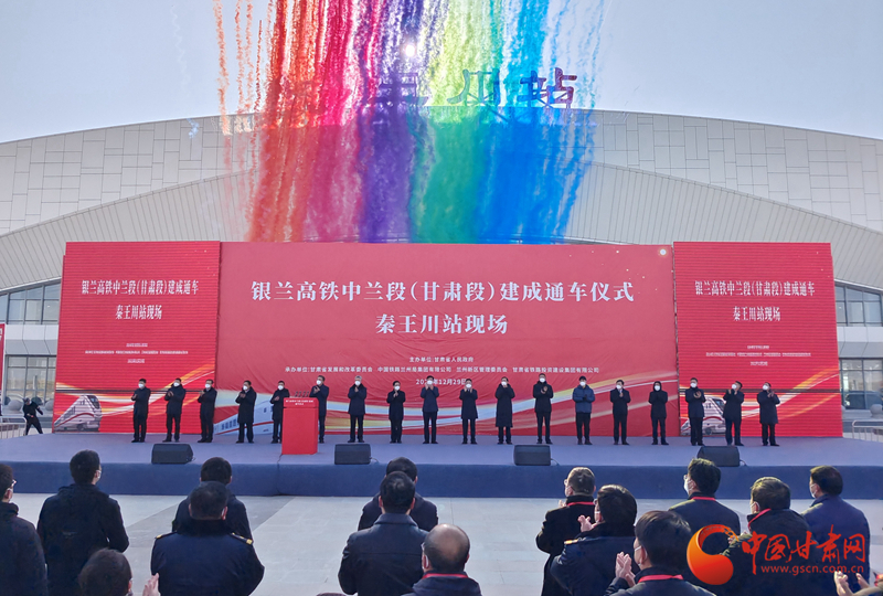 中國甘肅網12月29日訊(本網記者 程健 宋芳科 沈文剛 任磊)12月29日上午,銀蘭高鐵中蘭段(甘肅段)建成通車儀式,以視頻連線和現場啟動的方式,在蘭州、北京和蘭州新區秦王川站設3個會場舉行。