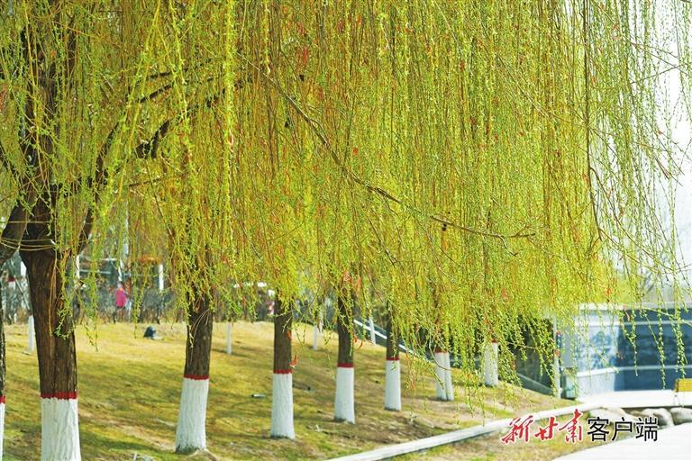 3月17日,隨著氣溫逐漸升高,蘭州黃河風情線上柳絲漸綠,丁香花、桃花競相開放,給市民帶來濃濃的春意。 新甘肅·甘肅日報記者 馮樂凱 攝