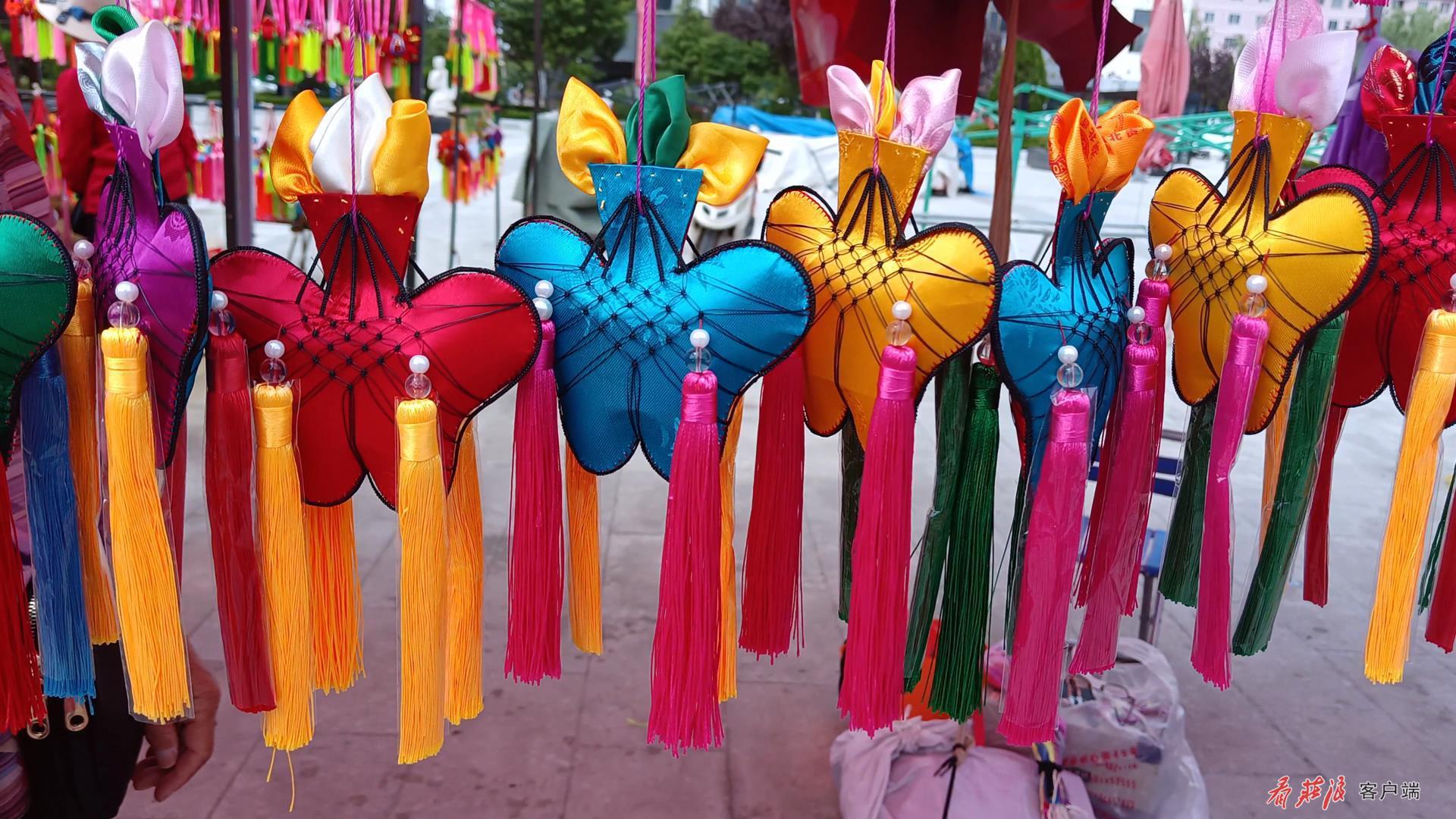 在莊浪過(guò)端午節(jié),少不了戴荷包、吃粽子。端午節(jié)來(lái)臨之際,莊浪縣到處都是待售的荷包,香飄四溢,讓人們?cè)缭绺兄蕉宋鐚⒔?/p>