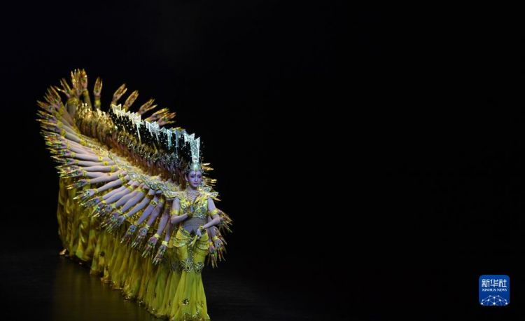 中國(guó)殘疾人藝術(shù)團(tuán)演員在敦煌大劇院表演大型情景音畫劇《千手千眼》(6月18日攝)。