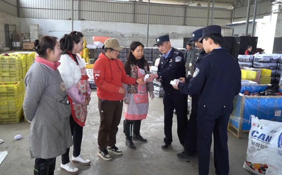 除了巡邏防控和矛盾調解,花牛派出所還開設了“田間課堂”,向果農積極開展普法宣傳。在農資市場休息區,民警們拉起橫幅,向果農們講解防盜、防騙、防火等安全知識。民警馬嘯不時翻看手機里的微信群說:“我們主動將果農納入微信群,不定時推送防騙知識,果農們遇到拿不準的情況也會及時向我們咨詢。”