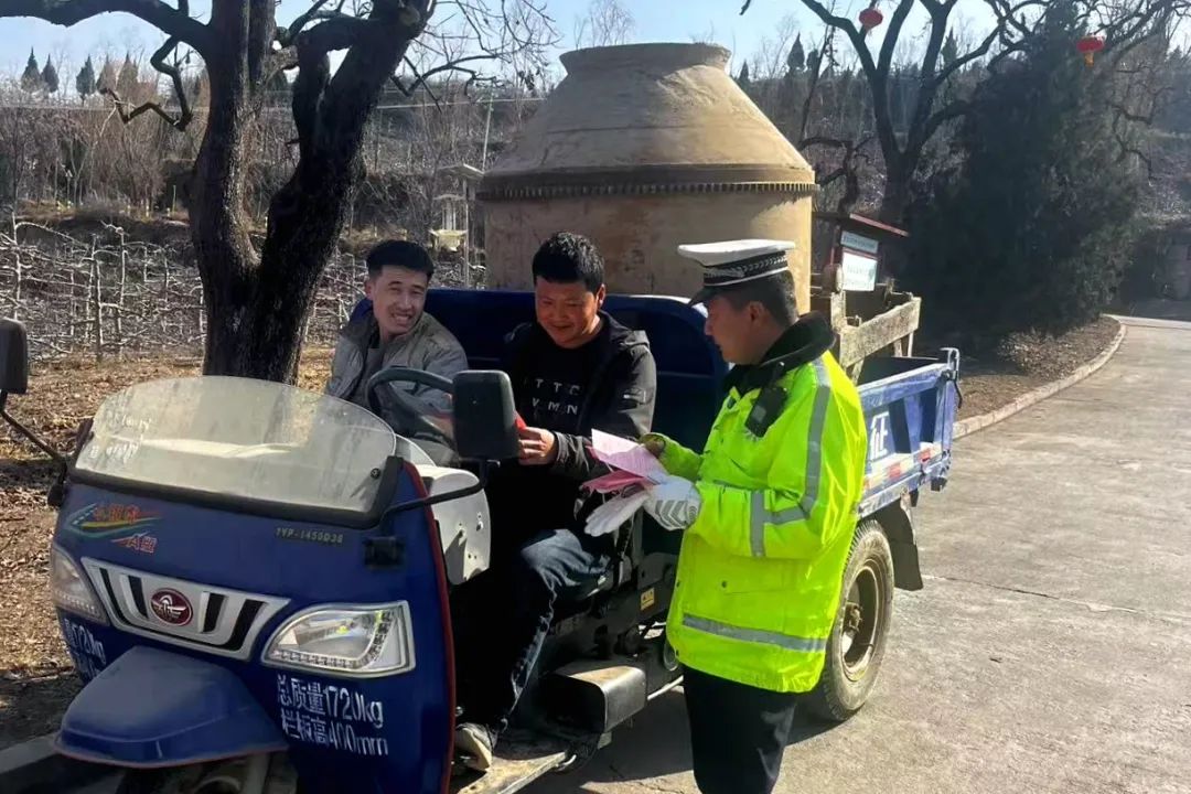 針對春耕期間農用車違法載人、超載運輸、人貨混裝等安全隱患,花牛派出所聯合交警中隊組建“春耕宣傳小分隊”,深入春耕生產一線,通過發放交通安全宣傳單等方式,結合典型案例,用“拉家常”的語言向群眾送去“交通安全”的種子,全力守護果農們的春耕生產路。