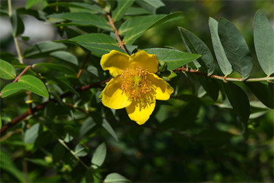 簡介:金絲桃,半灌木。花期6-8月,果期9-11月。花美麗,供觀賞。果實及根供藥用,果可作連翹代用品,根能祛風、止咳、下乳、調經補血,也可治跌打損傷。