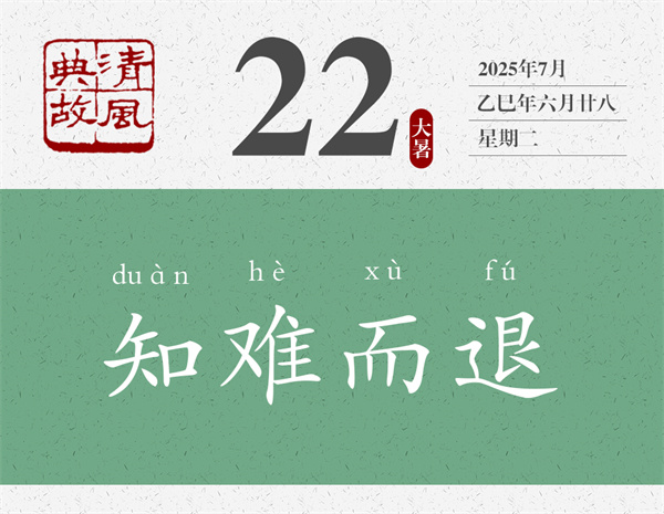 《吳子兵法·料敵》中,在列舉了六種應該避免與敵軍作戰的情形之后說:“凡此不如敵人,避之勿疑。所謂見可而進,知難而退也。”楊伯峻先生認為,“見可而進,知難而退”八字,或引自《左傳》,或直接引自古兵書。“知難而退”原本是一個軍事術語,意思是作戰時要見機行事,不能一味冒進。但它有一個重要前提,就是“見可而進”。