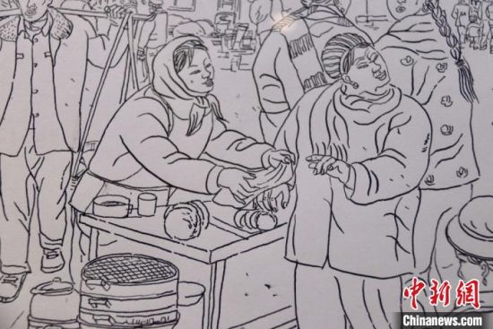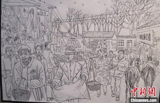 蘭州鋼筆畫愛好者手繪系列“臘月圖”,記錄“集市文化”,留住“年味”以感悟鄉愁?!¢Z姣 攝