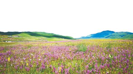 放眼望去,一切都變了樣,藍(lán)天、白云、碧湖、青草。身處一望無際的大草原上,心情也跟著豁然開朗起來。只見草原上的小徑像一條彩帶從云間散落,而遠(yuǎn)處的行人似一個個小白點(diǎn)兒,零零散散地在彩帶上移動著。看上去是那么新鮮,那么充滿活力,宛如一幅流動的美麗畫卷。
