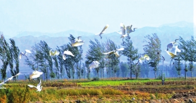 秋日的白銀天高云淡,風輕氣爽。隨著一年的稻田收割,成群的白鷺和野鴨等鳥類棲息在景泰縣五佛鄉成片的稻田、魚塘附近,或低空飛翔,或嬉戲覓食,形成一幅自然和諧的美麗畫卷。