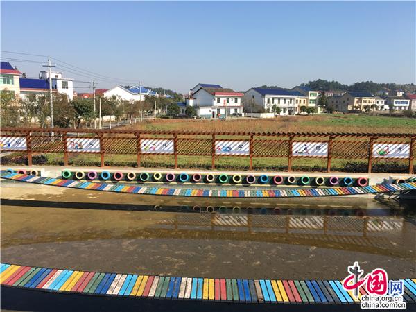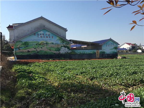 【點睛】站在野菊盛放的田埂上,眺望一幢幢錯落有致的樓房。墻上的彩繪內容惹人注目:青山綠水,桃紅柳綠,藍天白云之下是安居樂業的人們。“道德凝聚力量,文明傳播希望”,這是羅家坪村生態環境和人民生活的真實寫照。