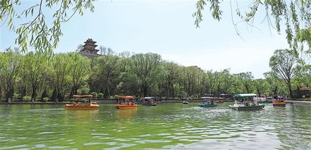 5月1日,游客在平涼市柳湖公園泛舟,享受假日美好時光。新甘肅·甘肅日報通訊員 吳希會