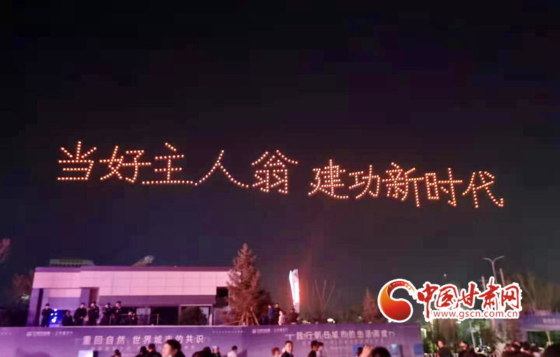 活動現場,千架無人機編隊以天空為幕,以“熒光”為筆,在金城上空分別繪就“慶祝中國共產黨成立100周年”“蘭州鐵橋”“奧體中心”等數幅壯美畫面,集中反映近年來蘭州市在經濟社會領域取得的成就。