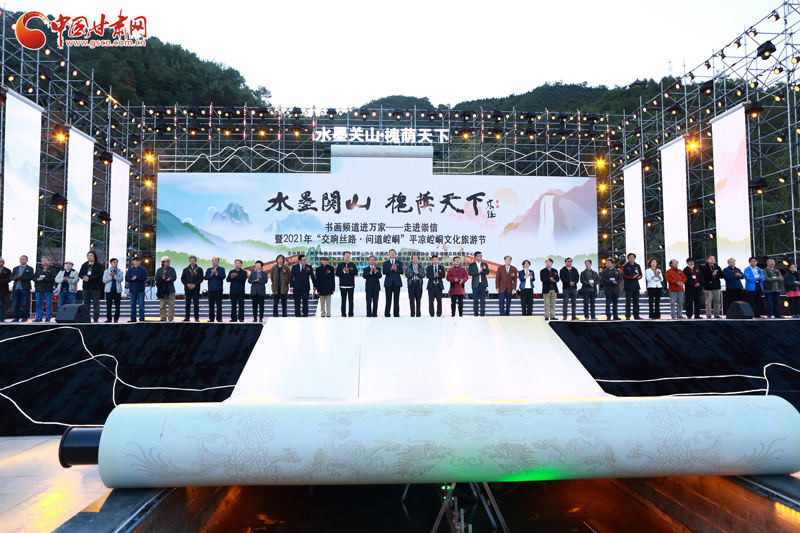 中國甘肅網(wǎng)5月20日訊(本網(wǎng)記者 靳佩佩 文/圖)5月19日晚,2021年“交響絲路·問道崆峒”平?jīng)鲠轻嘉幕糜喂?jié)開幕式暨“水墨關(guān)山·槐蔭天下”書畫頻道進(jìn)萬家——走進(jìn)崇信主題晚會(huì)在崇信縣龍泉廣場啟幕。