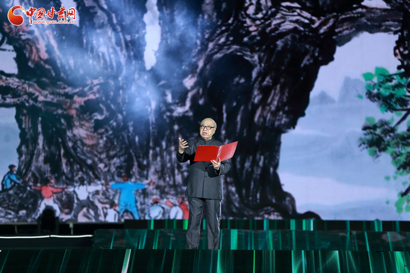 開幕式之后的“水墨關(guān)山·槐蔭天下”晚會(huì),以“黃·紅·綠”三色歷史篇章新理念,展現(xiàn)平?jīng)鰷嫔>拮兊臍v史發(fā)展新格局。晚會(huì)以童謠《大槐樹謠》開場,展現(xiàn)了屹立于崇信山坳中的大槐樹,歷經(jīng)3200歲風(fēng)雨,矗立成為民族精神的象征。非遺表演唱《弦子腔》+《崇信民歌》展現(xiàn)了崇信人民延續(xù)農(nóng)業(yè)生態(tài)精神,演繹對(duì)真善美的追求。還有書畫頻道的書畫家們現(xiàn)場通力合作,激情創(chuàng)作,專門為崇信人民創(chuàng)作了兩幅丈二畫作——《雄峙千秋》《公劉與崇信》,為本場晚會(huì)添色添彩。