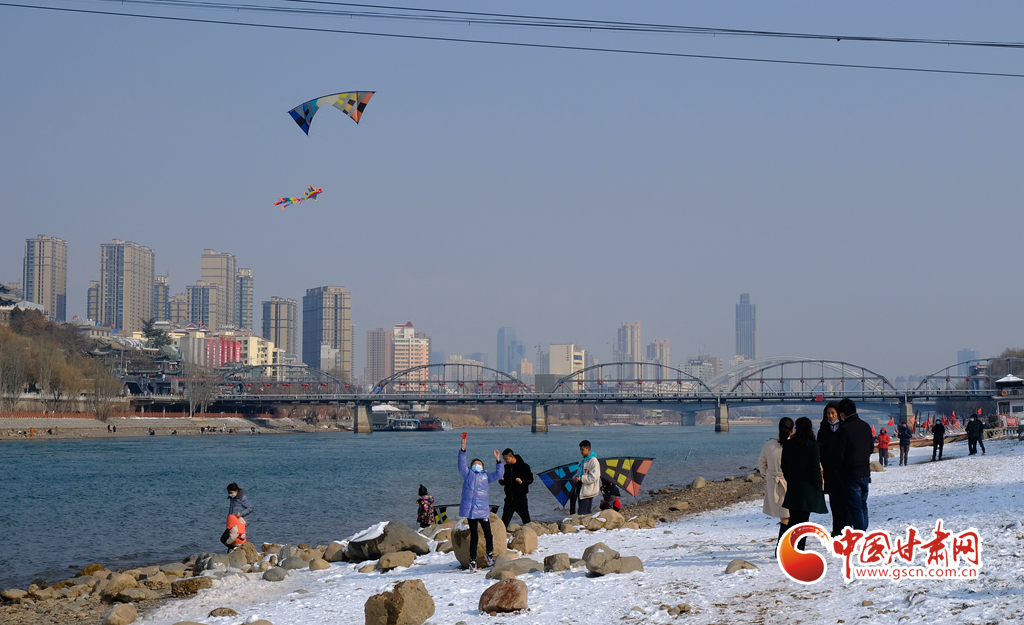 新春佳節,早春時光,2月7日,雪后天晴,市民走出家門來到黃河之濱放風箏。
