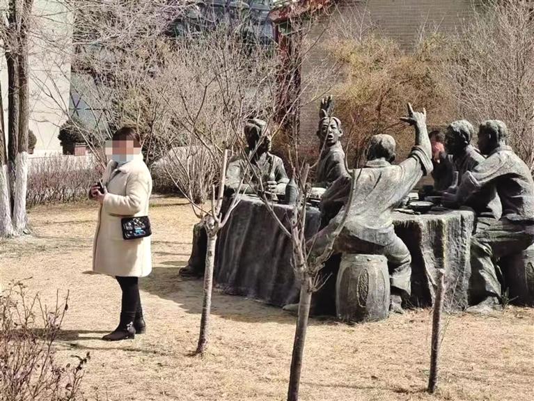 記者在水車博覽園看到,幾名游客翻越圍欄徑自從剛剛吐露新芽的草地上穿過,有的游客在雕塑上攀爬、玩耍,甚至坐臥在雕塑上拍照,這些行為不僅對園內設施造成了損壞,也對個人和城市造成了不好的影響。