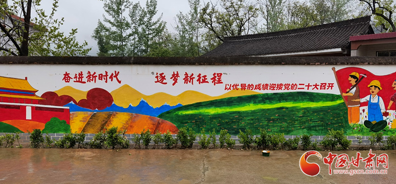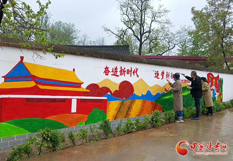 中國甘肅網4月21日訊(本網記者 李紅軍)4月19日,記者走進風景如畫的成縣陳院鎮,發現一群人揮舞著手中的“畫筆”,在村莊潔白的墻壁上,勾勒線條、填充顏色,一幅構思巧妙、色彩絢麗、栩栩如生的墻體彩繪作品讓一面面白墻“活”了起來,村莊環境更顯生動活潑。