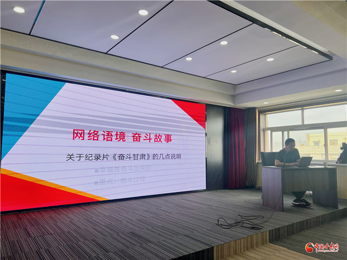 隨后,舉辦了《幸福中國——奮斗甘肅》大型網(wǎng)絡(luò)紀錄片導(dǎo)演培訓(xùn)會,會議由蘭州電視臺紀錄片創(chuàng)作中心導(dǎo)演趙國鵬作為主講人,中國甘肅網(wǎng)總編輯張振宇主持。