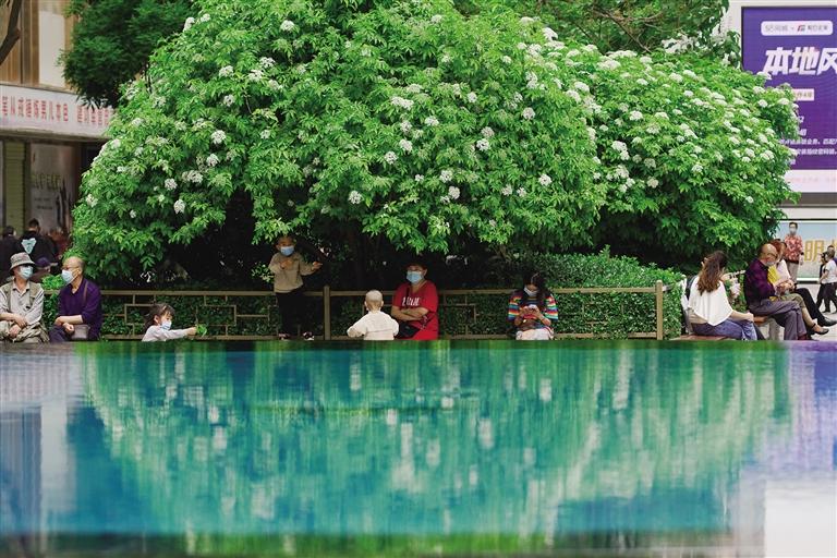 市民在張掖路休閑納涼