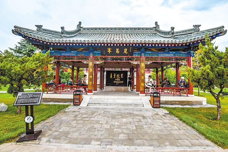 太極殿后是后花園,即伏羲廟第四院。這也真正體現了宮廷式建筑“前有宮,次有寢,后園林”的規制。“見易亭”居中,坐落在綠茸茸的大草坪上。園內植木育花,壘石筑山,碧草修竹,處處風景如畫。