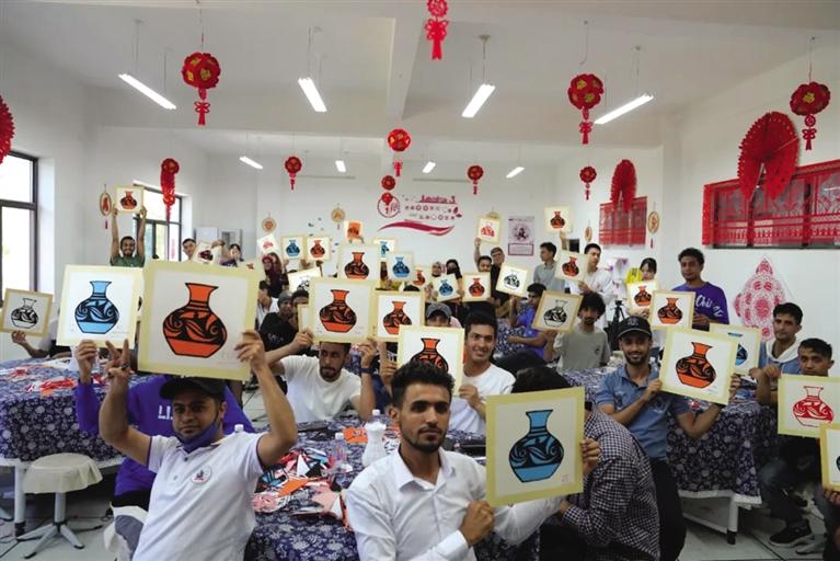 中國甘肅網7月8日訊 據蘭州日報報道(蘭州日報社全媒體記者 張丹)7月5日,在蘭州新區西岔園區蘭州太平鼓教育保護實踐基地,40名來自巴基斯坦、也門、老撾等國家的蘭州理工大學留學生,拿起鋤頭翻地、吟誦古詩詞、學打太平鼓……體驗濃郁西北風情,感受中國傳統文化魅力。參加此次實踐研學活動的留學生,學習體驗了蘭州太平鼓、蘭州鼓子、蘭州陶藝、蘭州剪紙、蘭州刻葫蘆、中華國學教育和農耕實操等傳統非遺課程。