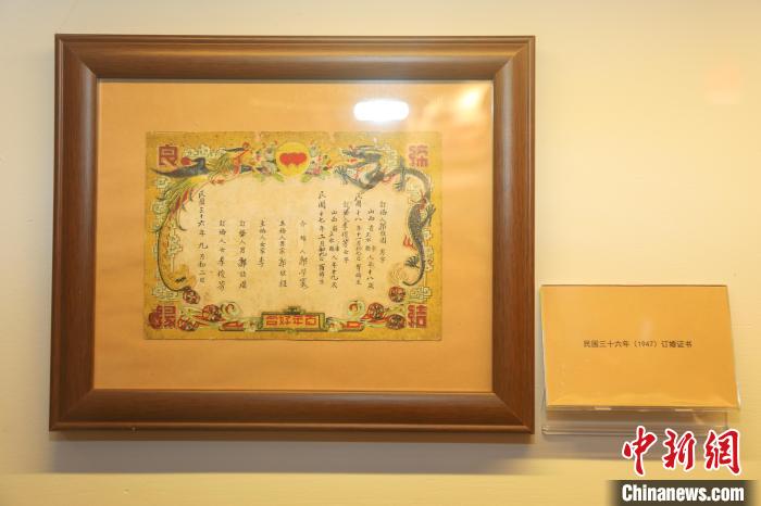圖為博物館展出的民國(guó)時(shí)期的訂婚證書。 劉力鑫 攝