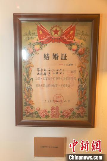 圖為博物館展出的建國(guó)初期的結(jié)婚證。 劉力鑫 攝