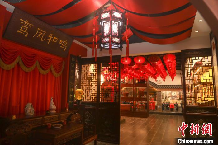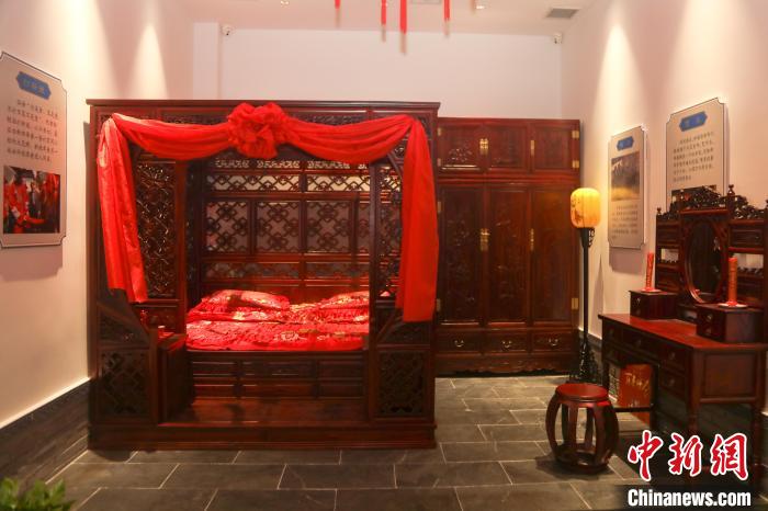 圖為博物館內(nèi)布置的中式傳統(tǒng)風(fēng)格新婚洞房。 劉力鑫 攝