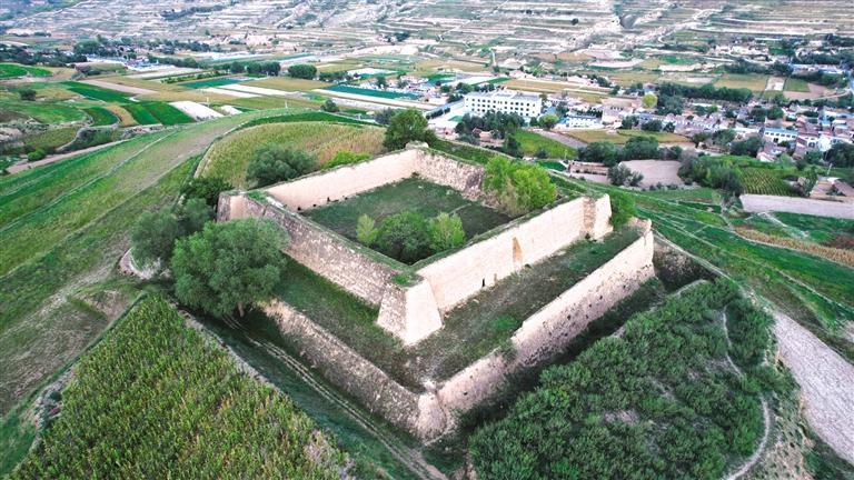 漫步騾子灘,附近的水家坡堡子也值得一去。這個堡子呈正方形,占地超4畝,不管從哪個視角看,都稱得上震撼。堡子分上下兩層,下層高5米、寬5米、邊長55米,上層高6米、底部厚3.5米、頂部厚2米、邊長35.5米。堡子外圍修有一圈寬5米、深6米、總長230余米的壕溝,曾為護城河。堡子約建于1946-1948年間,用來辦公和防御戰爭。1949年8月,解放軍在水家坡地界圍剿國民黨馬步芳部隊,經過一天一夜戰斗,馬步芳部隊潰敗逃往新營方向,當時有一發炮彈落在堡子一角,至今炮坑清晰可見。