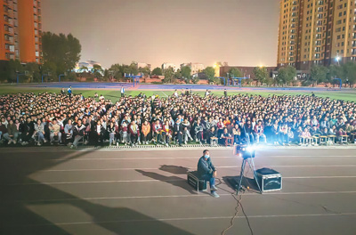 河南舞鋼第二高級中學校園公益電影放映現場。本文作者供圖