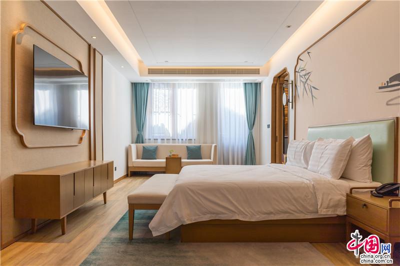 連廊連接禪意的茶室,裊裊焚香里喝茶談事,若興致上來,在餐廳親手做頓清簡的飯菜也是極好的。園景房自得雅趣,聽風穿耳,感受身心被原木色包裹,空間里流淌著新鮮的桂子香。