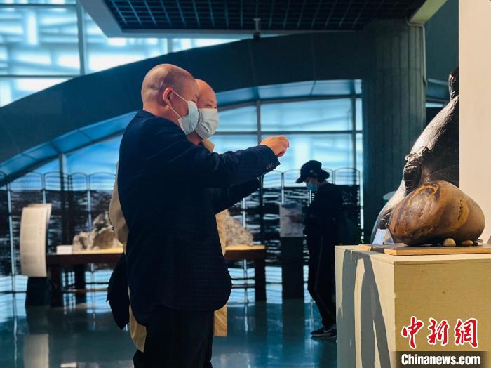 圖為一位參觀者用手機(jī)拍攝奇石。李嬌陽 攝
