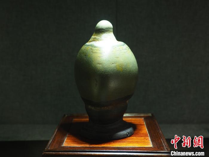 圖為現(xiàn)場的一塊奇石展品形如瓷瓶。李嬌陽 攝