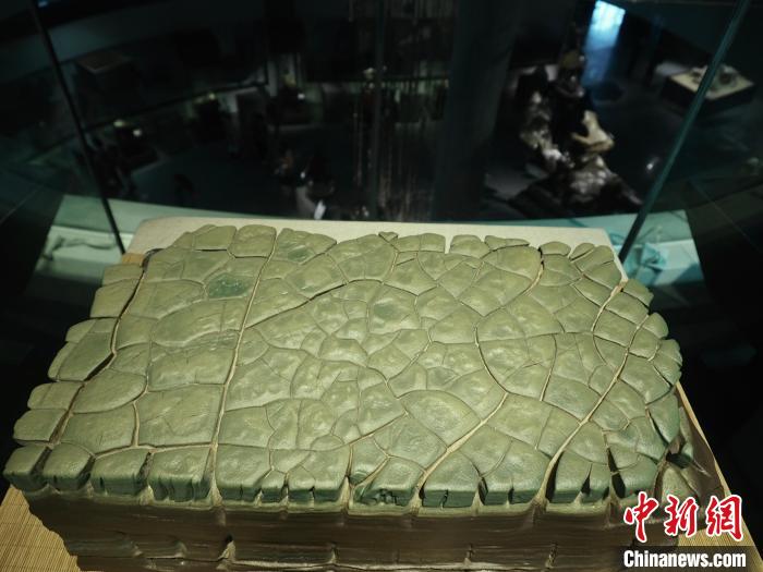 圖為現(xiàn)場展出的一塊奇石宛如碧綠的田地。李嬌陽 攝