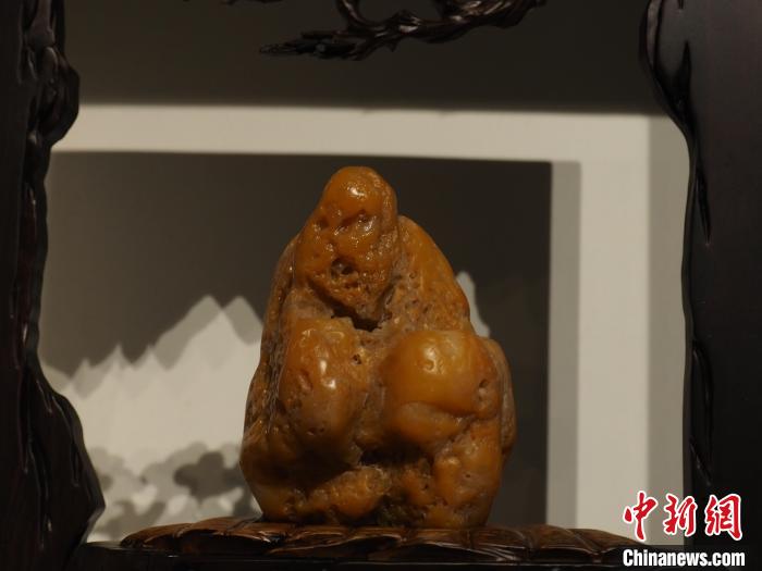 圖為現(xiàn)場展出的一塊奇石形似和尚。李嬌陽 攝