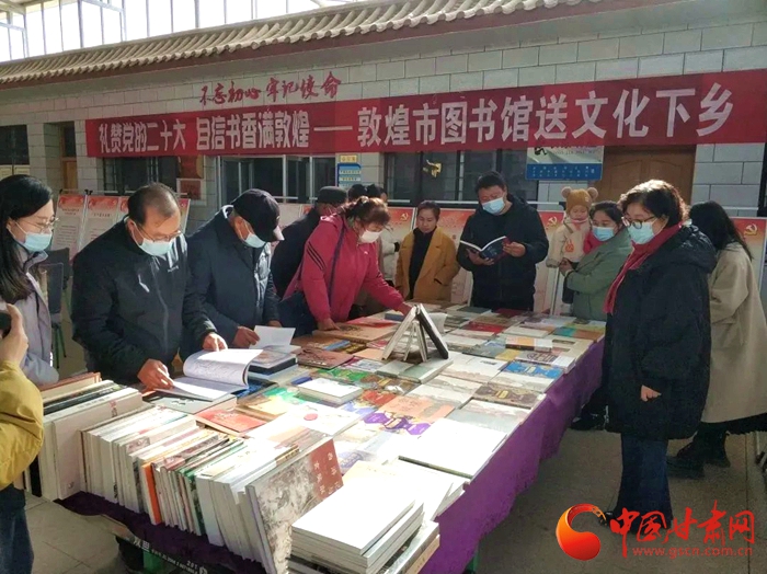 中國甘肅網11月15日訊 (本網記者 張蘭琴)為了深入學習宣傳貫徹黨的二十大精神,近日敦煌市圖書館組織開展“禮贊黨的二十大,自信書香滿敦煌”送文化下鄉活動受到當地群眾歡迎。據了解,活動將在敦煌市各鄉鎮持續進行,通過黨的二十大主題圖片展和敦煌精品圖書展相結合,利用文化惠民下基層的方式,向基層群眾宣傳黨的二十大精神,豐富人們的精神文化生活。