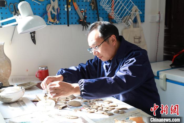 在工作站內,信陽市平橋區城陽城址管委會副主任劉勇也是修復組成員之一,今年也是他在城陽城工作的第18個年頭。