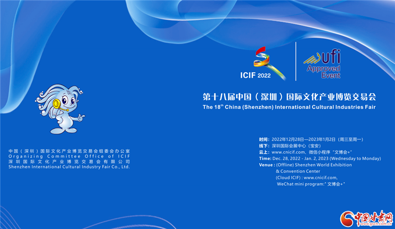 本屆文博會由中宣部、文旅部、商務部、國家廣播電視總局、中國國際貿易促進委員會、廣東省政府和深圳市政府聯合主辦,國家廣電總局輪值主辦,深圳報業集團、深圳廣播電影電視集團、深圳出版集團有限公司、深圳國際文化產業博覽交易會有限公司承辦。線下主會場將于12月28日至2023年1月2日在深圳國際會展中心9-14號館舉辦,12月29日起正式向公眾開放。云上文博會平臺設在文博會官網(www.cnicif.com)、微信小程序“文博會+”,與線下主會場展覽時間同步,全天24小時開放。此外,本屆文博會還設立了65家分會場,分別設立在深圳市各區(新區),目前各分會場已陸續啟動展覽展示與交易活動。