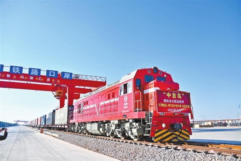 中國甘肅網1月3日訊 據蘭州晨報報道(奔流新聞·蘭州晨報記者張鵬翔)2023年1月1日,蘭州新區首趟“中吉烏”公鐵聯運國際班列在蘭州新區鐵路口岸煥新啟程,駛向烏茲別克斯坦扎拉夫尚。這也是蘭州新區2023年發運的首趟國際班列,為蘭州新區國際班列運營迎來“開門紅 ”。